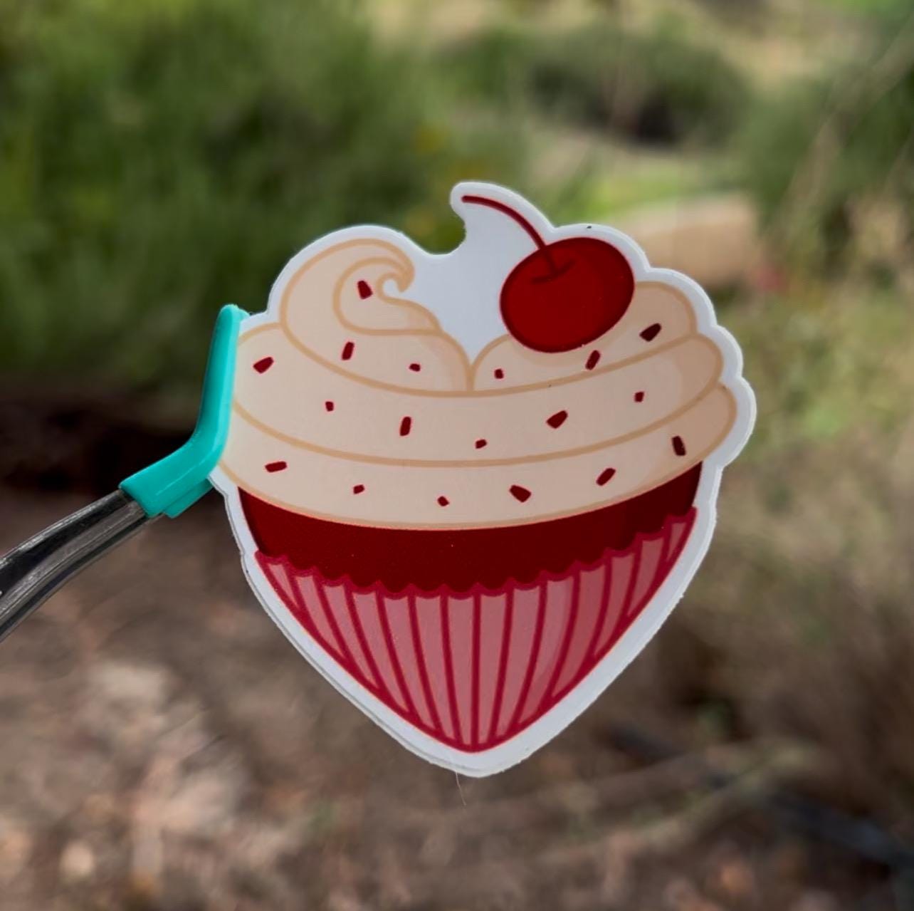 Red Velvet Heart Cupcake Sticker - Waterproof Vinyl Decal